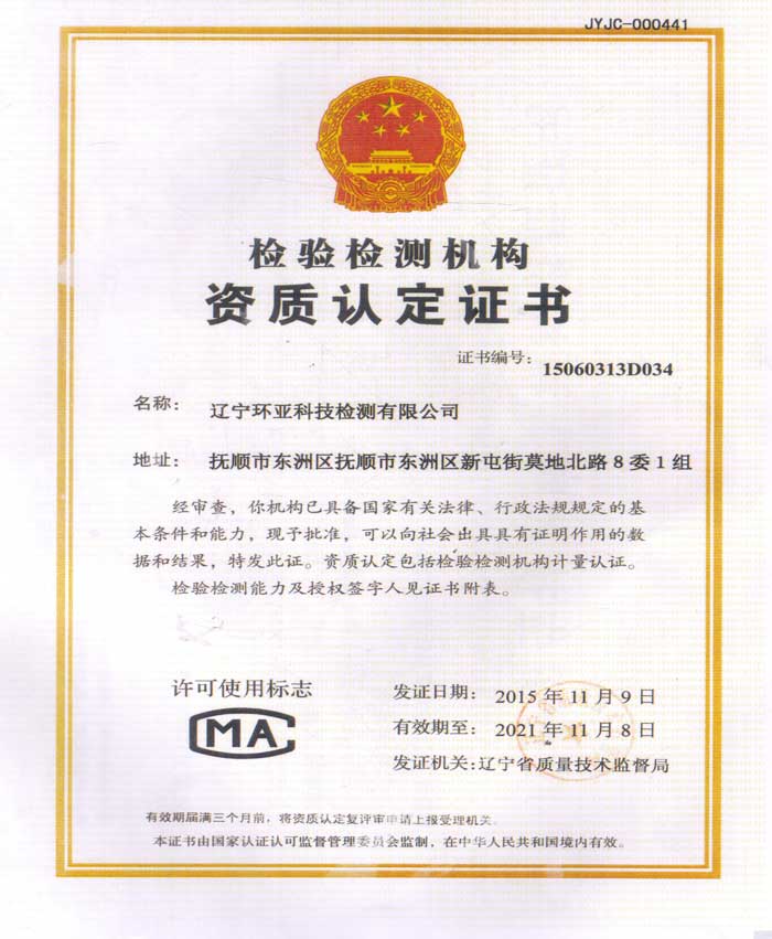 檢驗檢測機構(gòu)資質(zhì)認(rèn)定證書